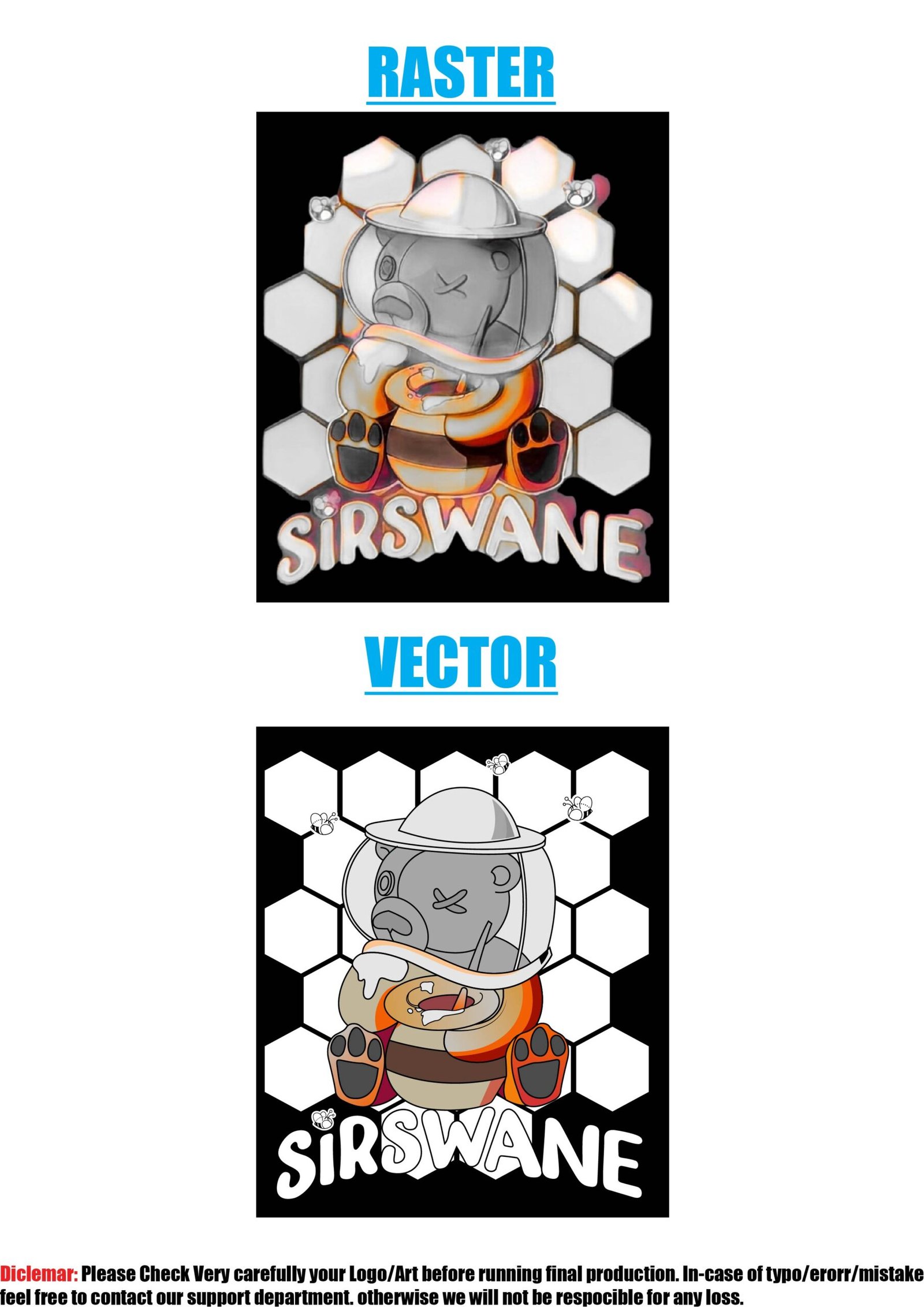 This playful design features a bear in a beekeeper’s hat with honey dripping from its mouth, set against a honeycomb background. The raster version has more shading, while the vector version offers clean lines and flat colors. A great example for clients submitting character-based artwork.