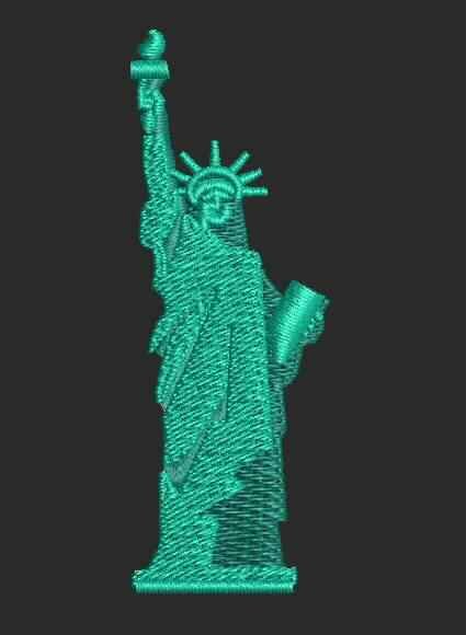 Teal embroidered Statue of Liberty with iconic torch and tablet.